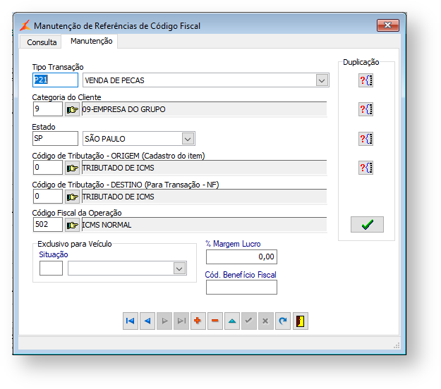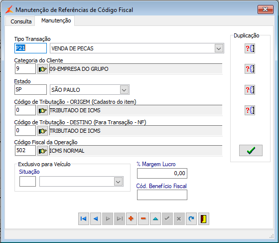 Para rentabilidade da simulação ser a real com a do atendimento balcão é necessário cadastrar uma referência cruzada com o CST/CFO que vai ser utilizado na venda apontada para UF e Categoria da Revenda. Importante estar marcado Rentabilidade Bruta (Inclusive na consulta do Item) para isso.
