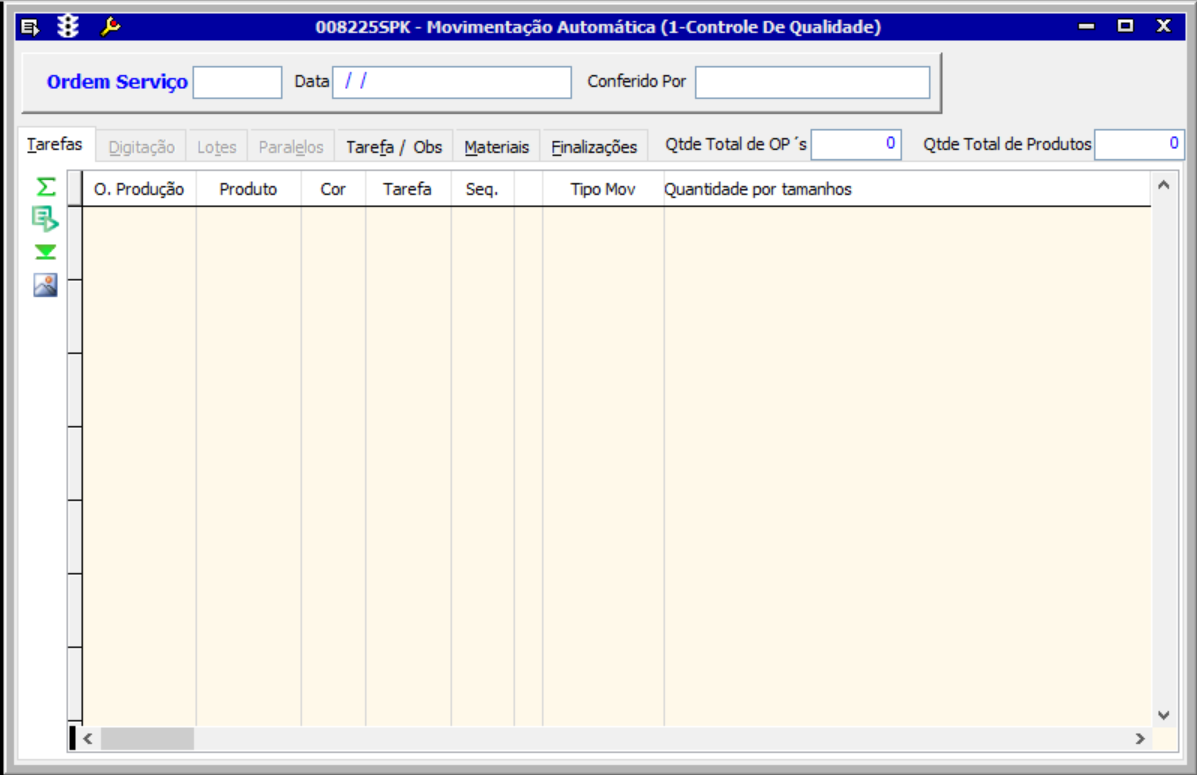 Após informar os dados de quantidades de Ordem de Produção, na página tarefas serão