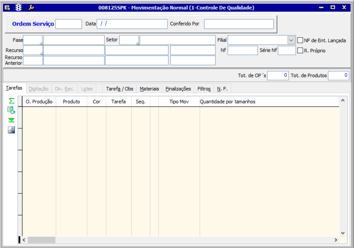 a Tela de Movimentação Normal , é considerada como uma Ordem de Serviço, porque por