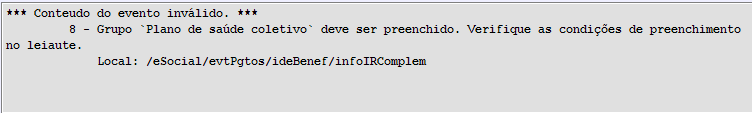 Descrição: Este erro refere-se ao desconto da rubrica de Plano de Saúde presente na folha do colaborador.
