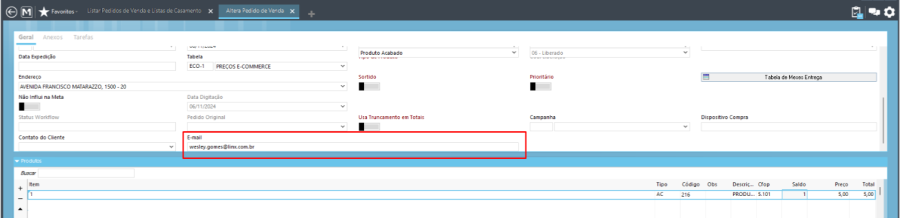 - Alteração do campo e-mail no pedido de venda não atualizará o cadastro do cliente;