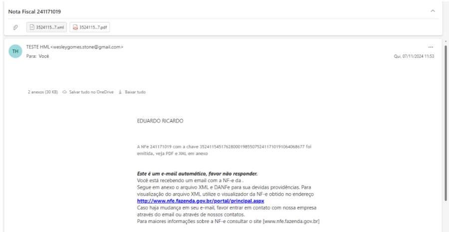 - caso exista um e-mail preenchido, considerá-lo para o envio da nota ao consumidor;