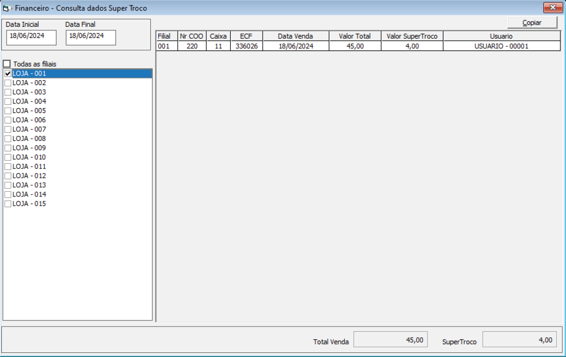 - Filial: Filial a qual fez a venda integrada ao Super Troco;