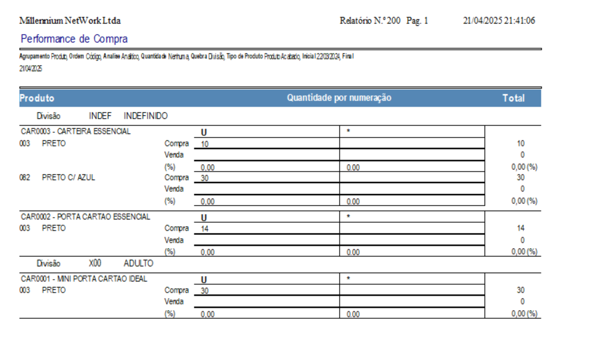 1. Clique no Menu do Millennium >Compras>Relatórios> 200 Performance de Compra: