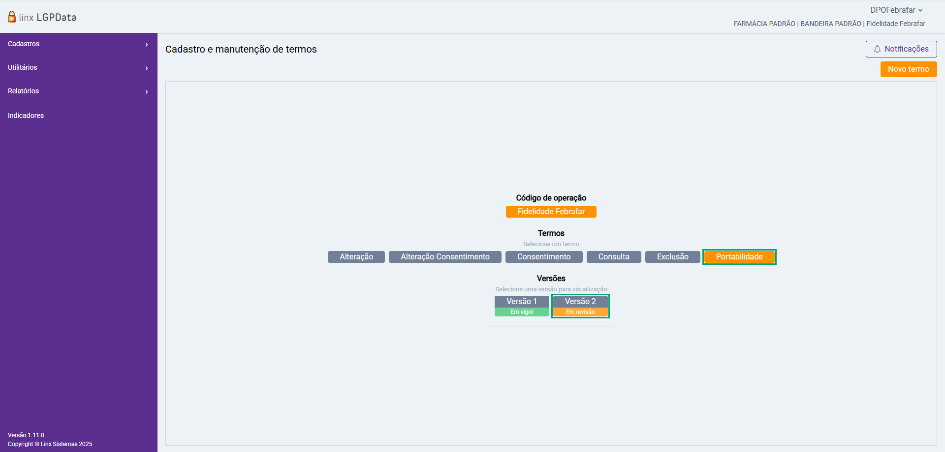 1. Para realizar o cadastro de termos, acesse: Portal LGPData.
