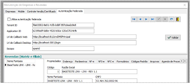 Após a configuração no Azure AD, é necessário configurar o Linx DMS para utilizar a autenticação federada.