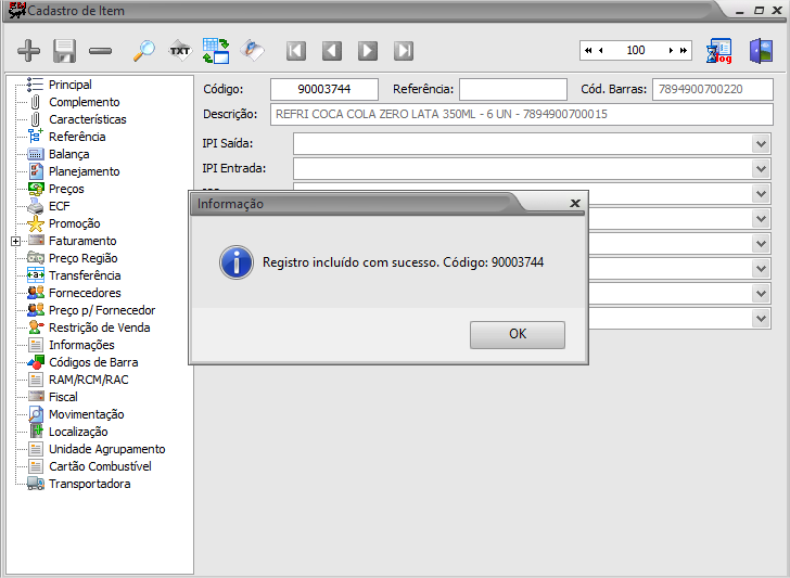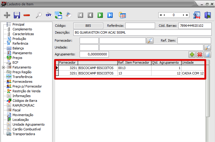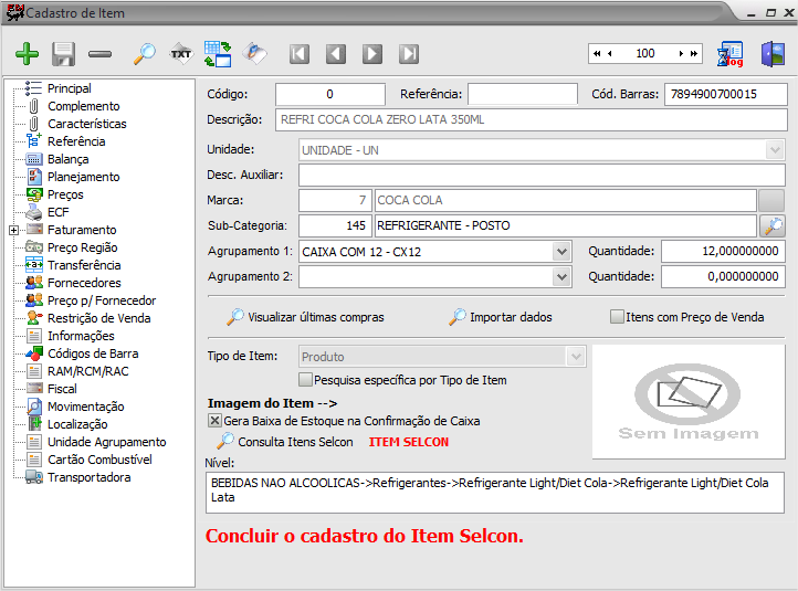 Após realizar a carga Full do SelCon, a Monitoria vai agrupar em um só cadastro os itens que correspondem ao produto principal do SelCon, será migrado para um único item, os códigos de barras, estoque, preço de venda, fornecedores, parte fiscal do item (tributações ECF, IPI, PIS e COFINS, NOP, NCM), produção e promoção mix.