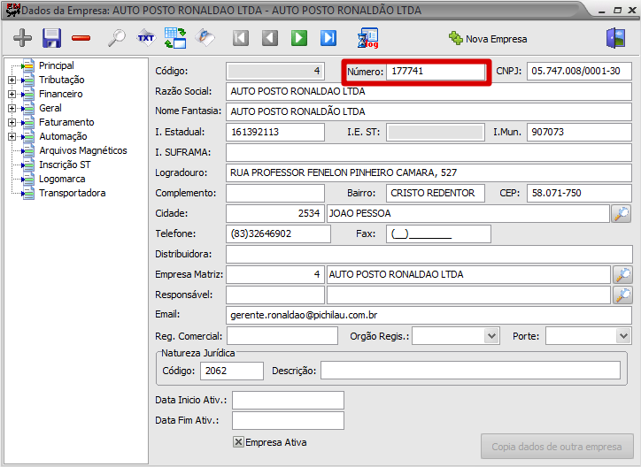 Após habilitar o parâmetro, deverá ser informado no número da empresa, o IBM da empresa que foi definido na Monitoria da Raizen.