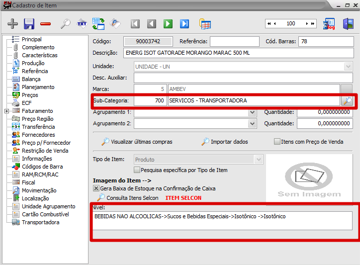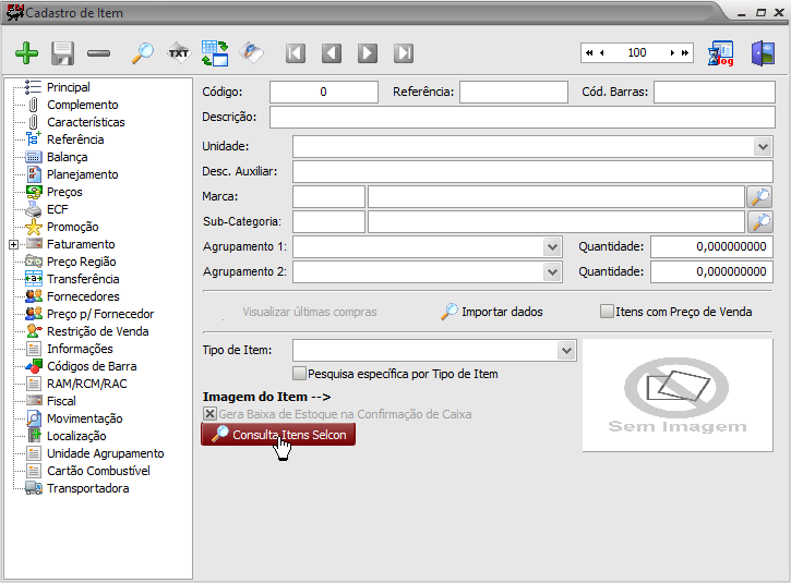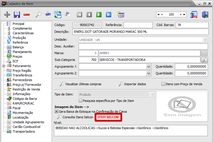 Quando a empresa utiliza o SelCon, os produtos são recebidos através das requisições realizadas na Monitoria, esses produtos são inseridos na tabela: tab_item_SelCon. Os itens inseridos nessa tabela já estão com alguns campos definidos, como por exemplo; Descrição, Unidade e Marca, restando ao usuário completar o seu cadastro para o item estar apto para a venda. Para facilitar a visualização, foi implementado uma informação no cadastro do item, mostrando quando o item é um item SelCon.