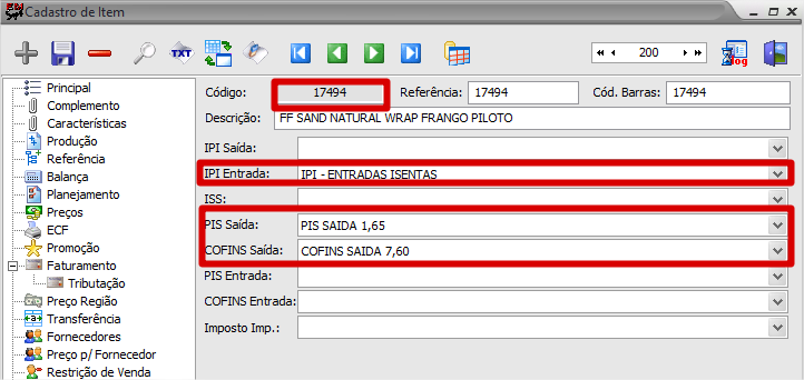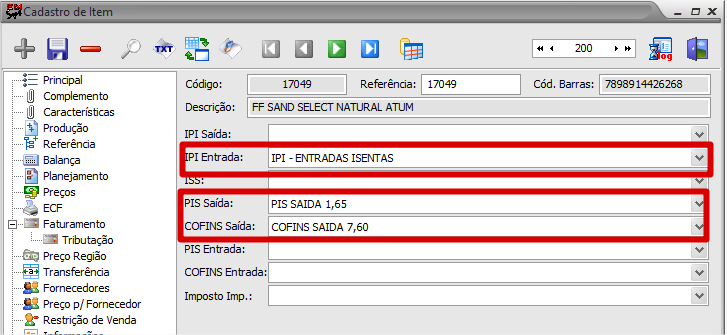 Após realizar a carga Full do SelCon, a Monitoria vai migrar a parte fiscal (tributações ECF, Classe Fiscal, IPI, PIS e COFINS, NOP, NCM) do item anterior para o item que recebeu a migração: