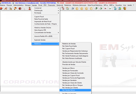 Relatório de Vendas que mostra as vendas do período pelo nivelamento da Raizen, o relatório fica em Vendas > Relatórios > Rel. Vendas > Rel. Vendas SelCon.