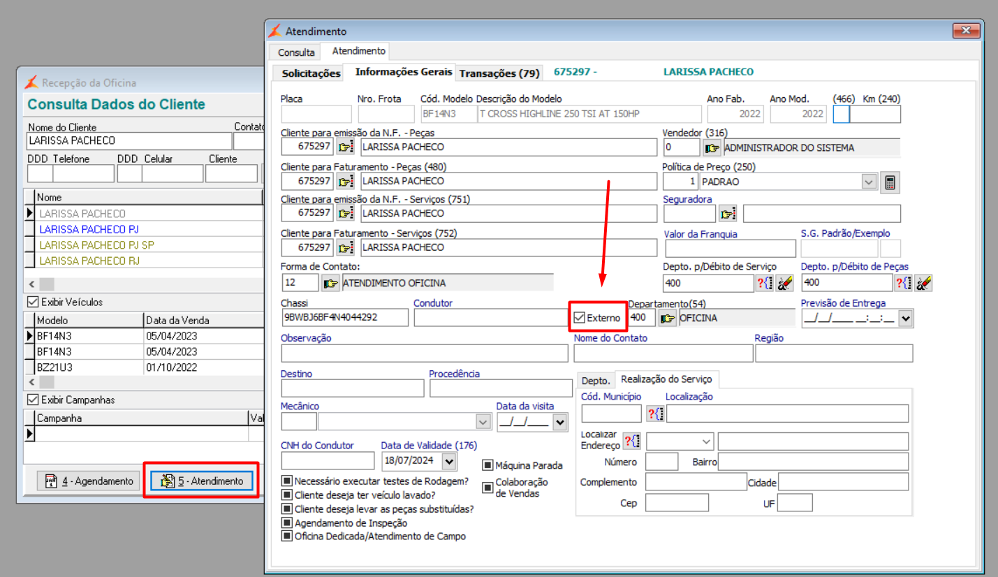 Após realizar todas as parametrizações acima, abra um atendimento pelo menu: Oficina > Atendimento Oficina.