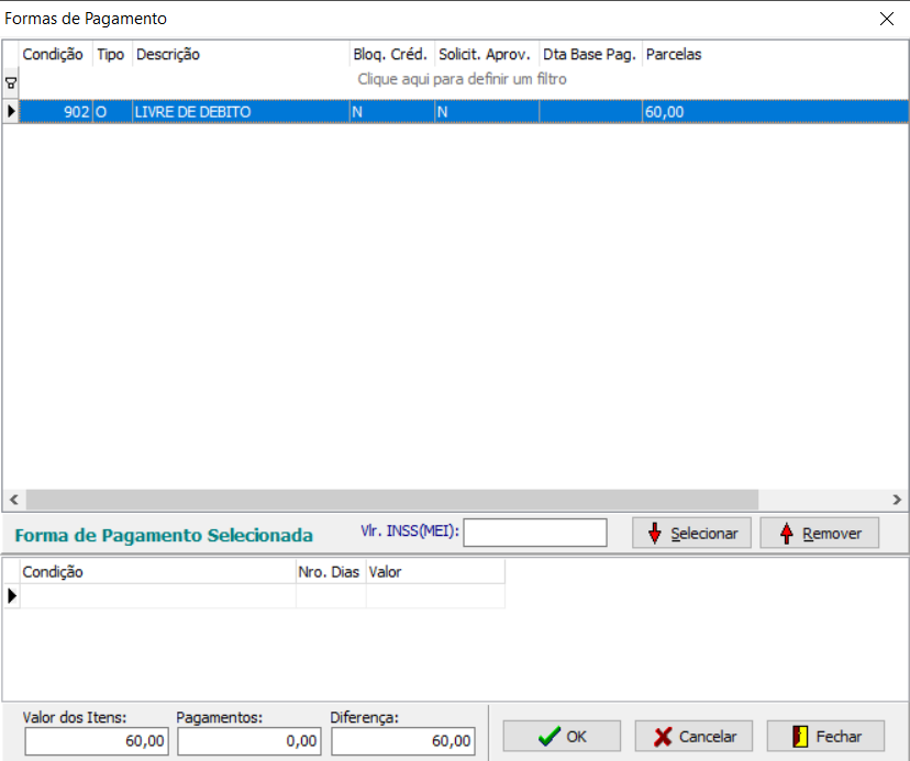 Após clicar em OK, abrirá a tela da condição de pagamento que será utilizada.