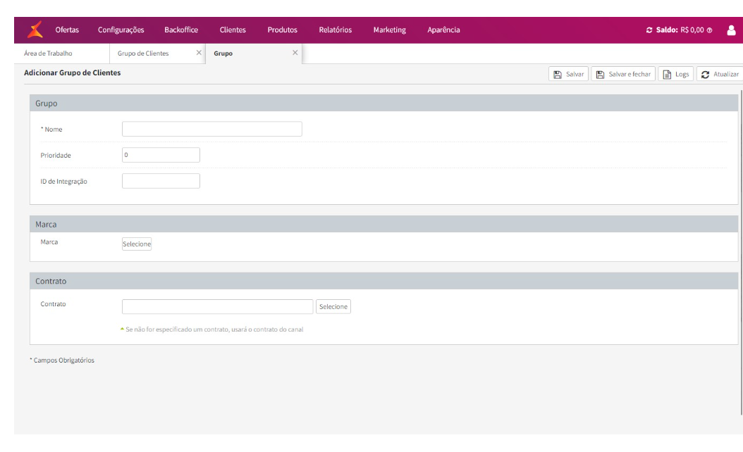 - Possibilidade de vincular contratos diretamente aos grupos de clientes.