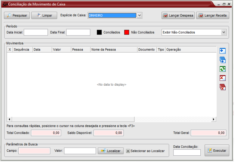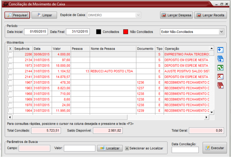 Nesta execução serão marcados com o sinal contrário ao existente, conciliando o que não está conciliado e desconciliando o registro já conciliado.