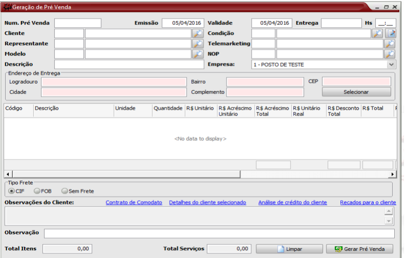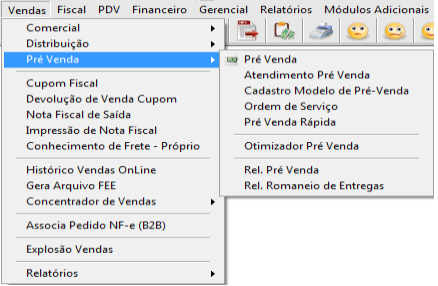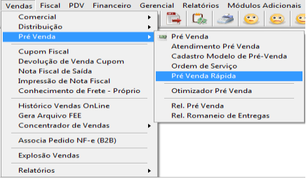Para digitação de uma pré-venda, seguir o caminho