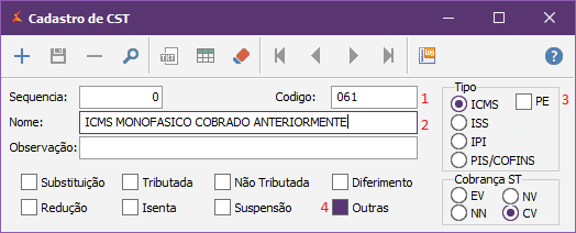 O cadastro do CST 061 abaixo será utilizado apenas para clientes NFC-e.