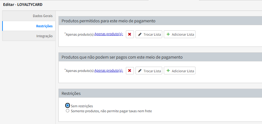 - Produtos permitidos para este meio de pagamento