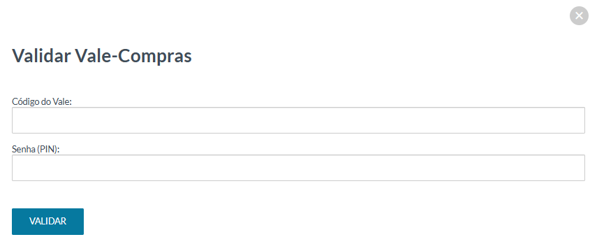 2 - Quando o usuário clicar no botão "Inserir Vale-Compras", abrirá uma modal para inserção de código do vale (cartão) e senha (pin de 6 dígitos):