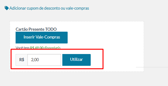 4 - O cliente definirá o valor que pretende usar e selecionará o botão "Utilizar":