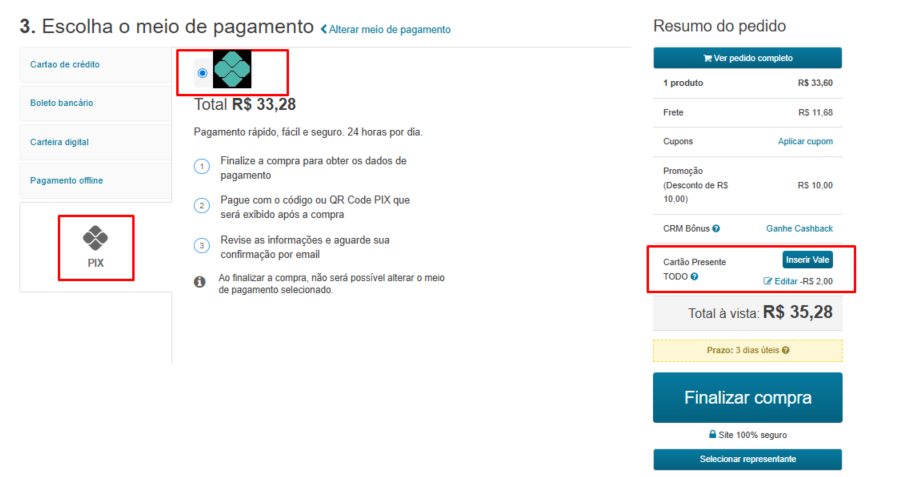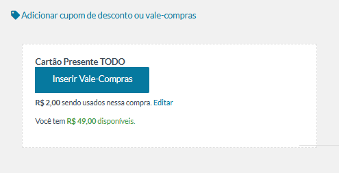 5 - No checkout, será possível pagar todo o montante do pedido, dependendo do valor a ser utilizado, bem como combinar a TODO com outro meio de pagamento: