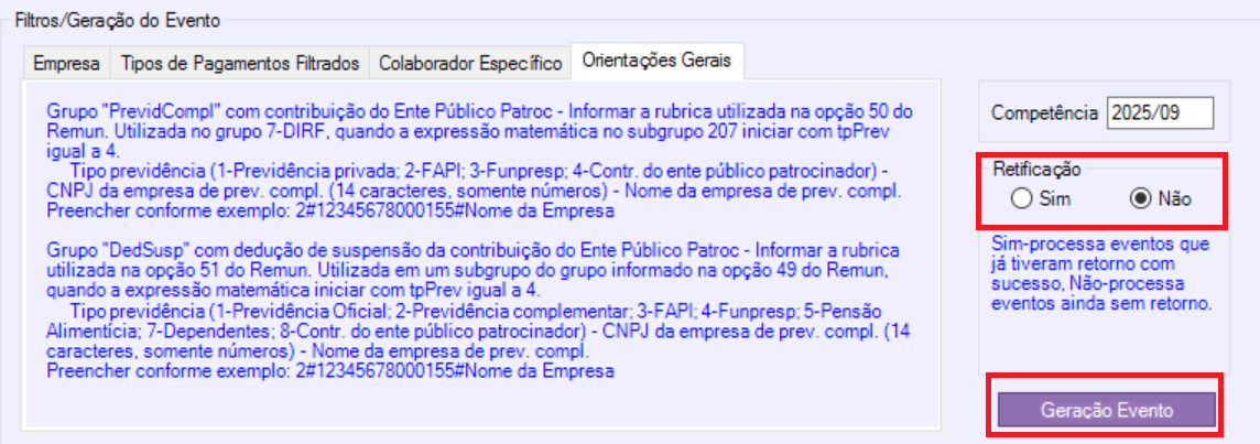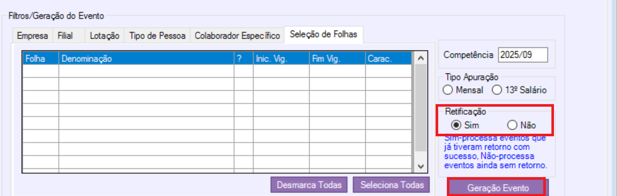Passo 02: Faça a geração do S-1200 do mês anterior dos colaboradores ou da empresa (se for o caso), como retificação. Envie na sequencia.