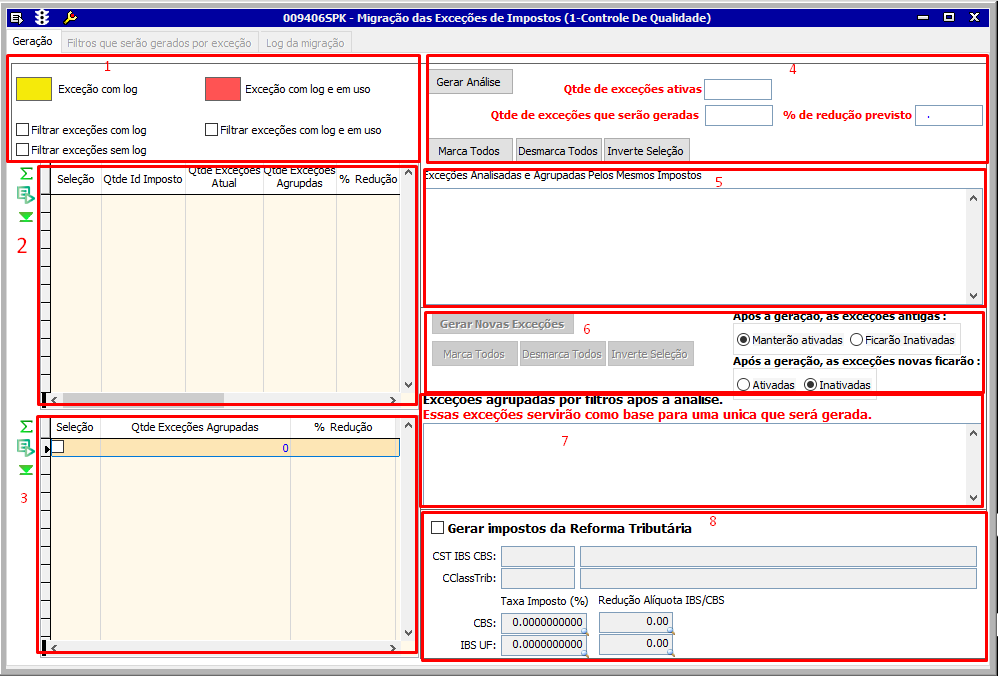 Esta tela tem como finalidade auxiliar na migração e consolidação de exceções fiscais, permitindo: