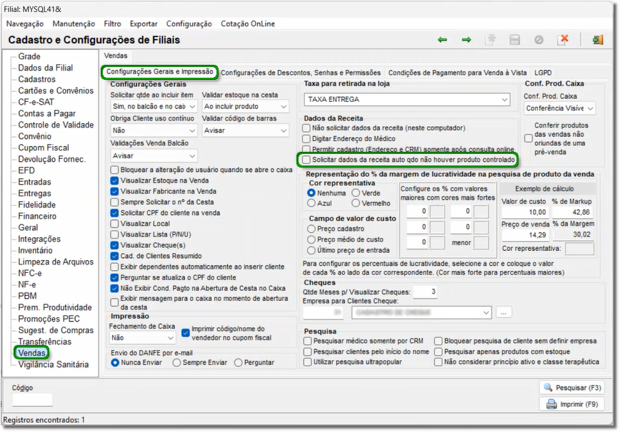 1. No retaguarda, acesse o menu Configurações > Filiais > Vendas > subaba Configurações Gerais e Impressão;