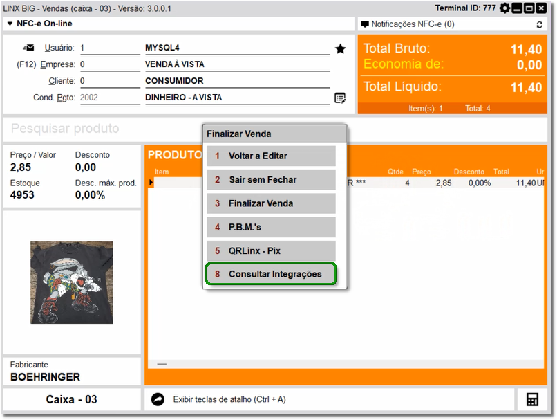 3. Aperte a tecla 'Esc' no teclado e selecione a opção '8 - Consultar integrações';