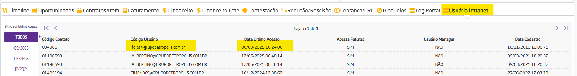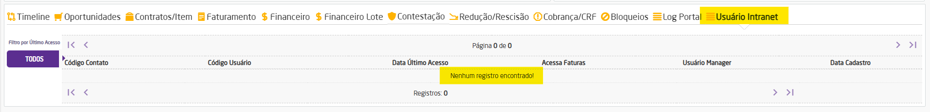 Você pode confirmar se realmente o CNPJ não possui acesso vinculado, no campo Usuário Intranet