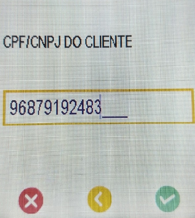 Após escolher uma das opções apresentadas na tela é necessário informar o CPF/CNPJ do cliente, campo este não obrigatório, porém, caso o abastecimento seja para um cliente em específico e o mesmo tenha uma negociação de preço ou forma de pagamento, será necessário informar o CPF/CNPJ para que estas informações sejam aplicadas na baixa do abastecimento,