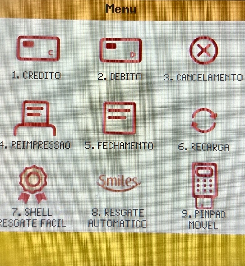Realizadas todas as configurações citadas acima, no POS Auttar será apresentada a tela inicial do POS onde nela contém as opções para inicializar uma venda, opções como crédito, débito, cancelamento, reimpressão entre outros.