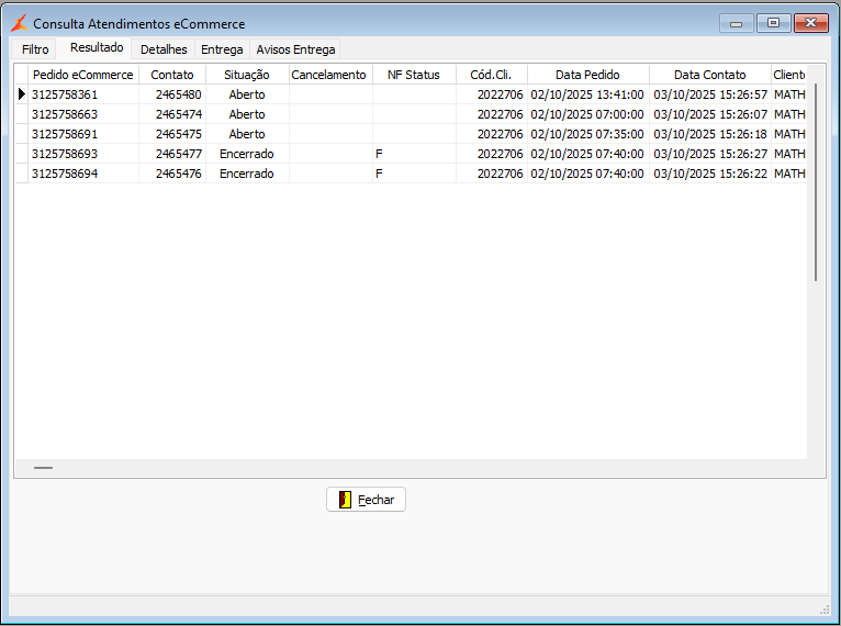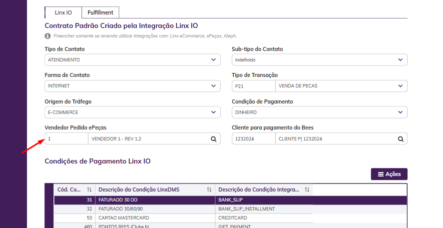 Menu: Peças > Linx eCommerce > Pedidos eCommerce