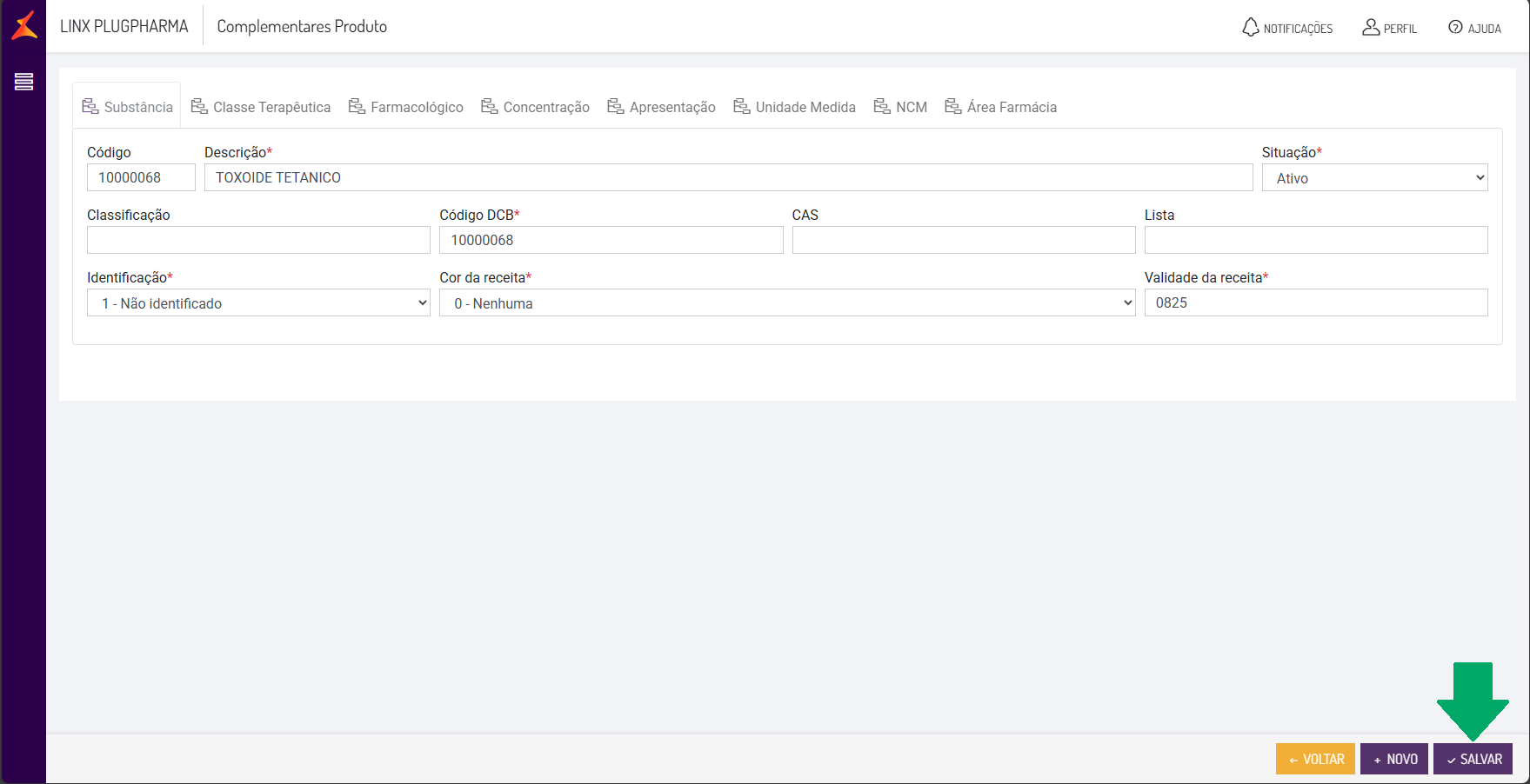 Importante: o cadastro complementar de produto tem o objetivo de criar e editar as substâncias presentes nos produtos.