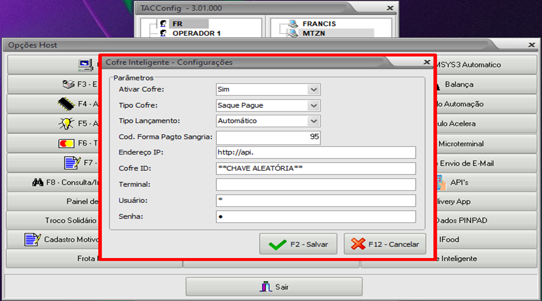 Acesse no TG3Config → HOST → Cofre Inteligente