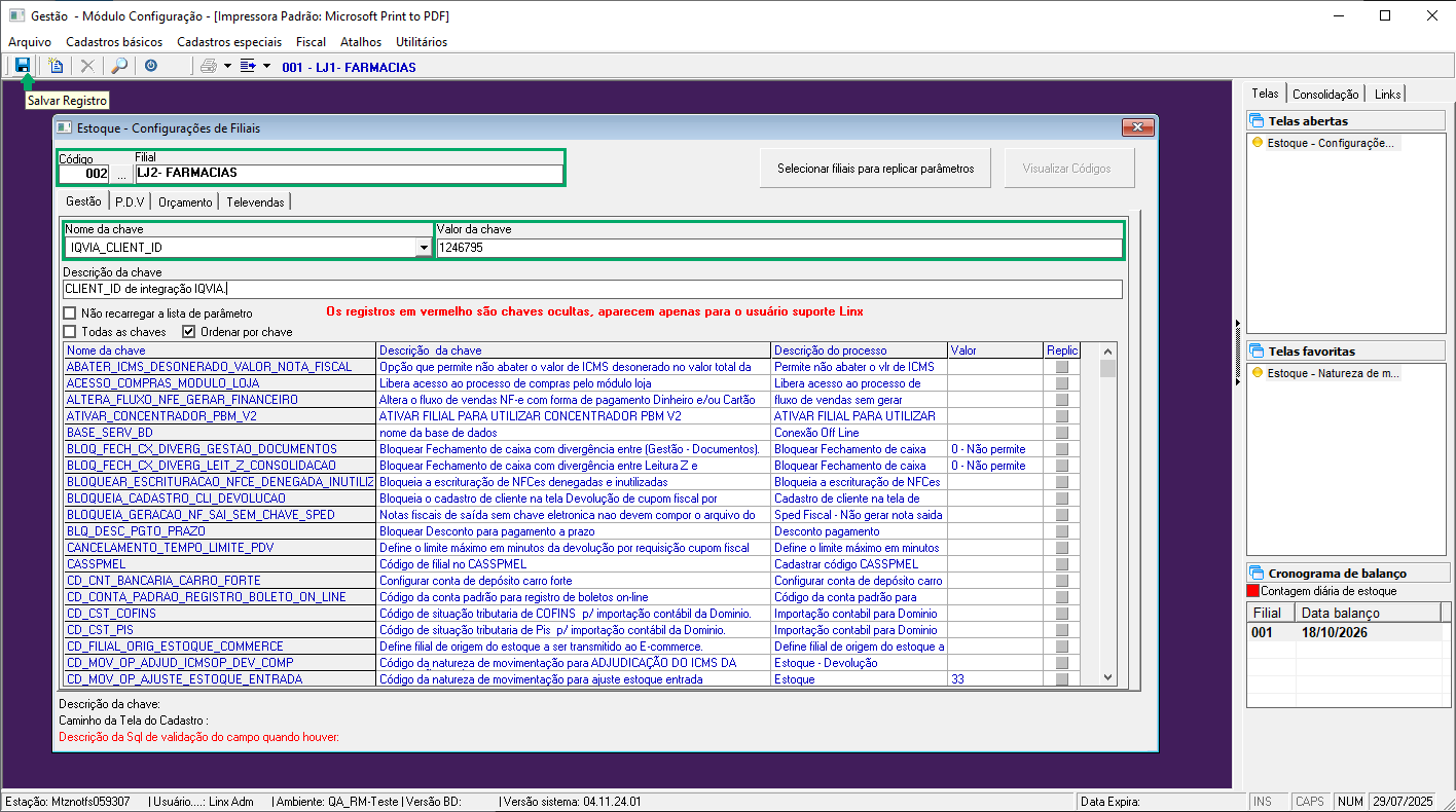 - Módulo Configuração - Como realizar a configuração do o código do IQVIA