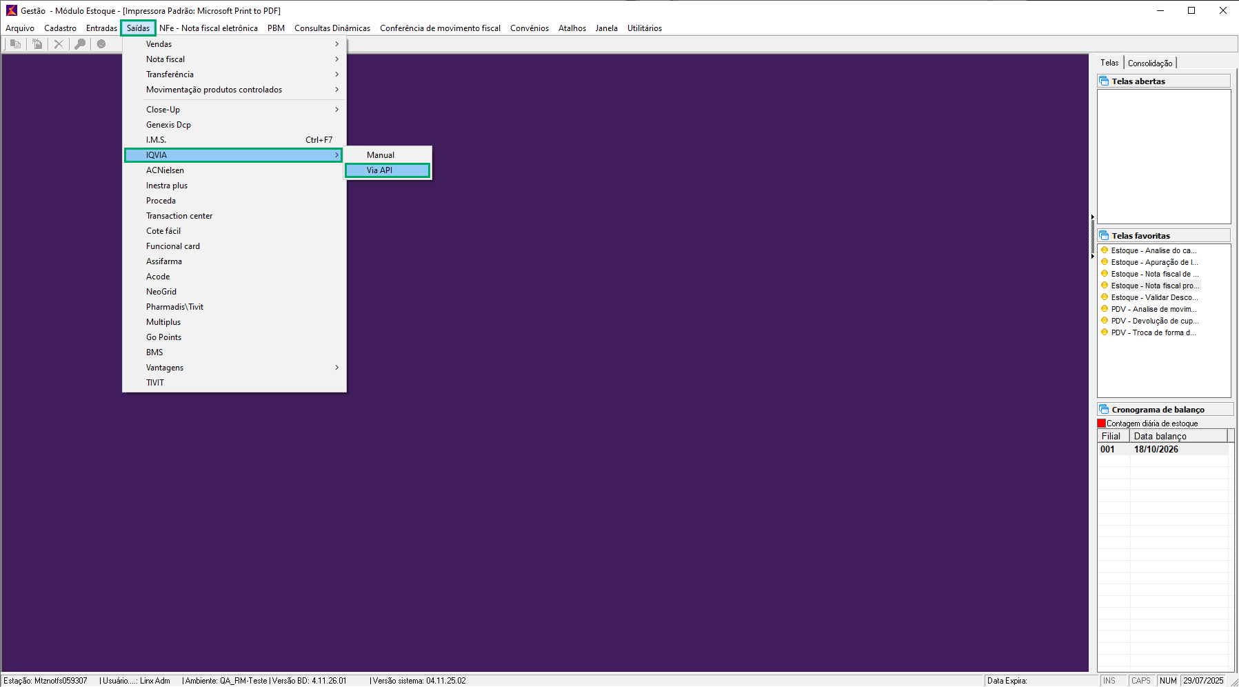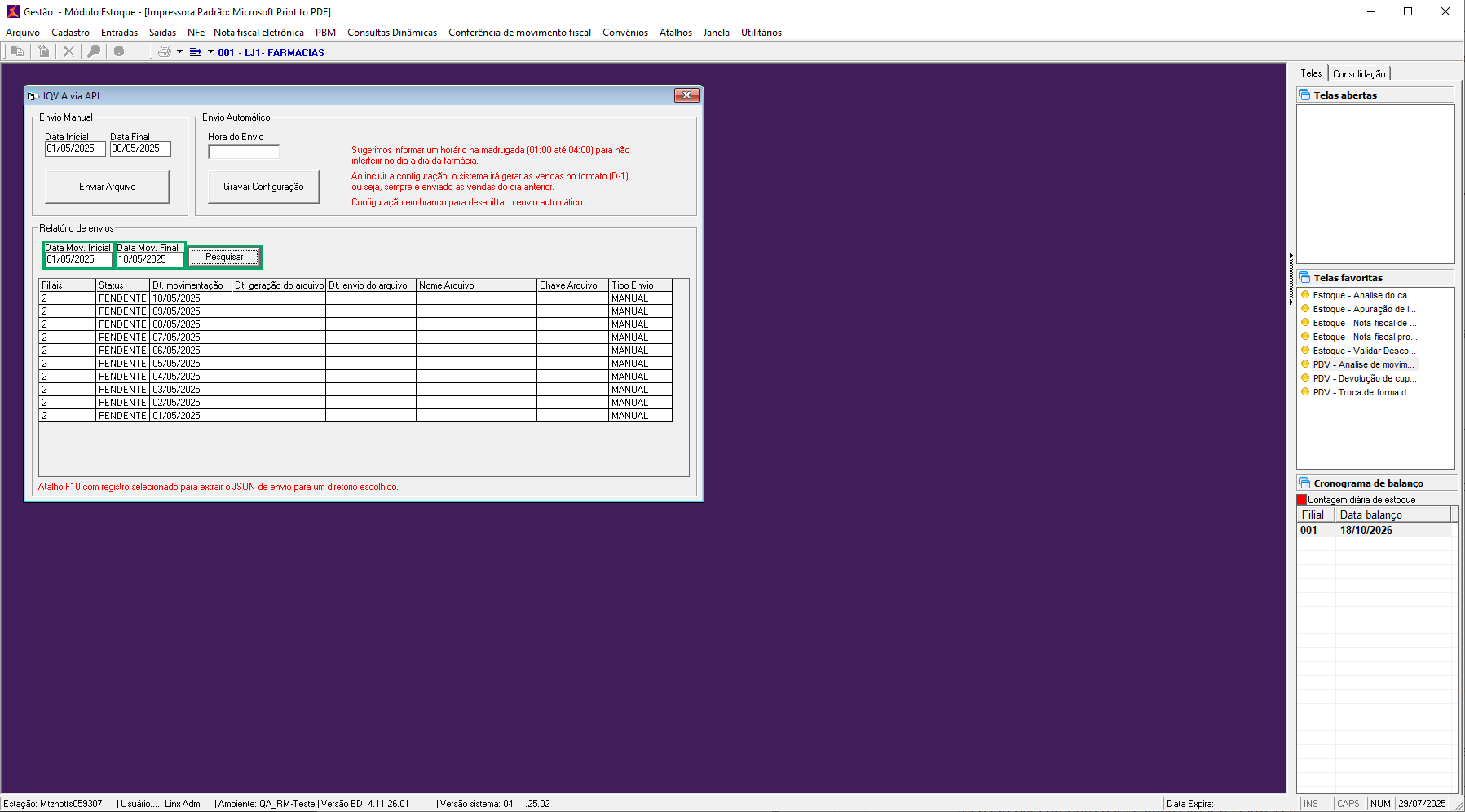 - Módulos Estoque - Como fazer o envio automático dos dados de IQVIA via API