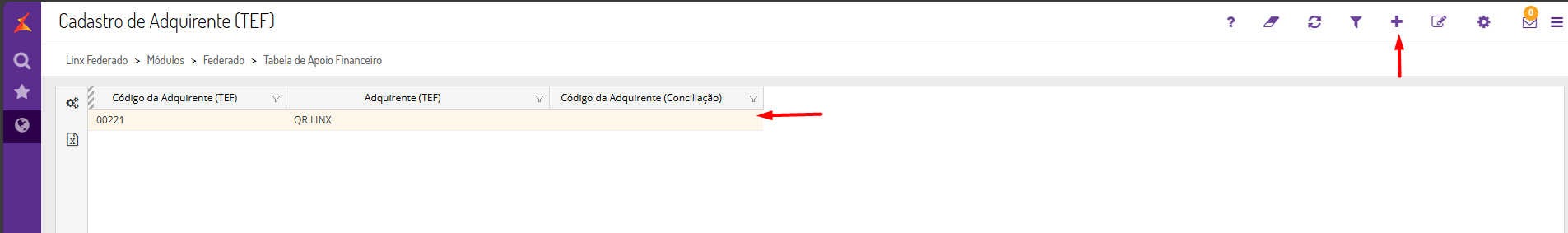 Ambiente Federado > Cadastro de Adquirente (TEF) - Responsável pelo TEF (Transação) - Realizar cadastro;
