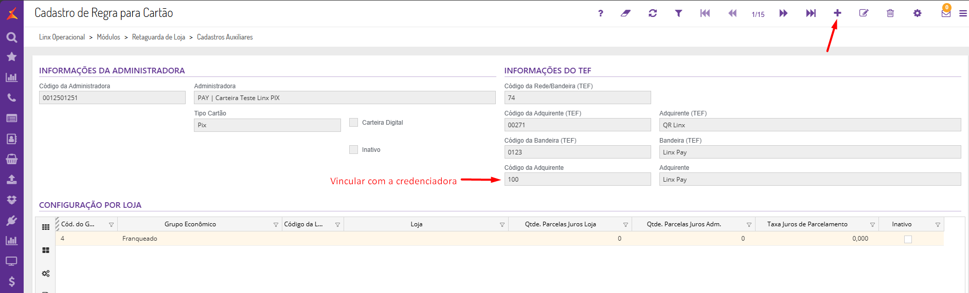 Para que as integrações destes atendimentos sejam realizadas com sucesso no Linx UX, é necessário cadastrar a adquirente, bandeira, credenciadora e regra de cartão da respectiva forma de pagamento.