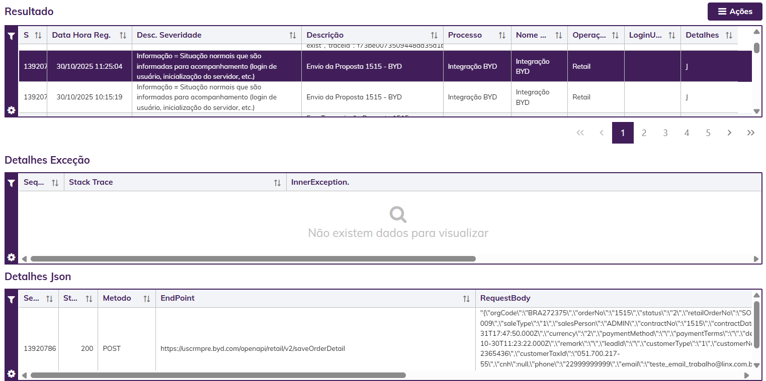 Todos os processos são registrados na tela de consulta de log Web.