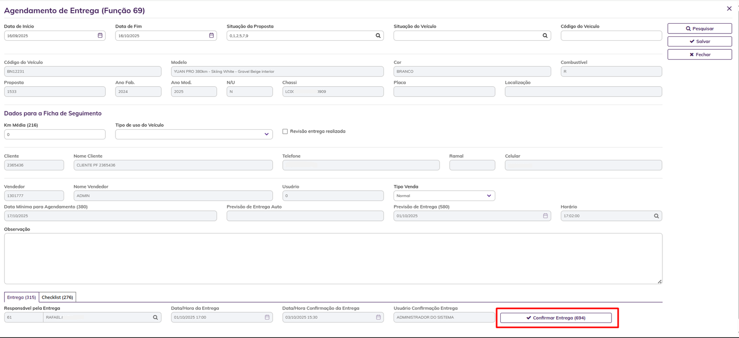 O registro de Entrega do veículo é enviado quando a entrega do veículo for confirmada (item 5.4 deste documento).