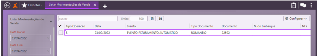 Em Vendas\Consulta Movimentações, faça uma busca para visualização as movimentações geradas após a atualização do status da pré-nota.