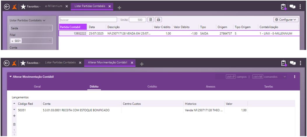 • Selecionar a partida contábil;