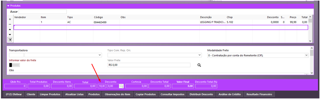 - Na tela de simulação, selecione a condição de pagamento configurada para dar o desconto na primeira compra;