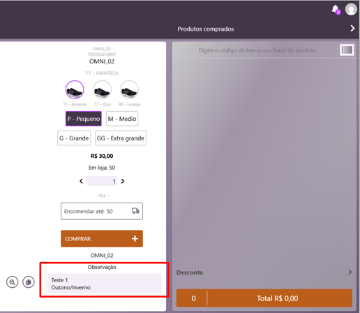 - Preencher o campo Observação (habilitado após a seleção do produto);