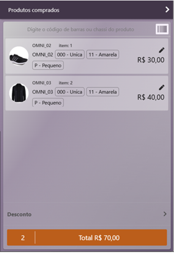 Na etapa de finalização da venda, o sistema exibirá na tela o campo Item de cada produto selecionado.
