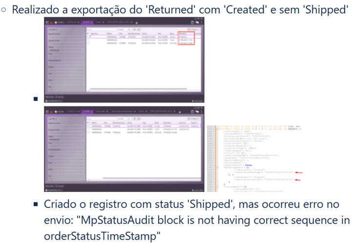 Realizada a exportação do ‘Returned’ com ‘Created’ e sem ‘Shipped’