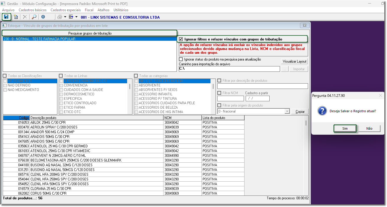 Para vincular os grupos de tributação para filtrar os produtos em lote que possuem vínculo com o programa da Farmácia Popular, realize os passos a seguir: