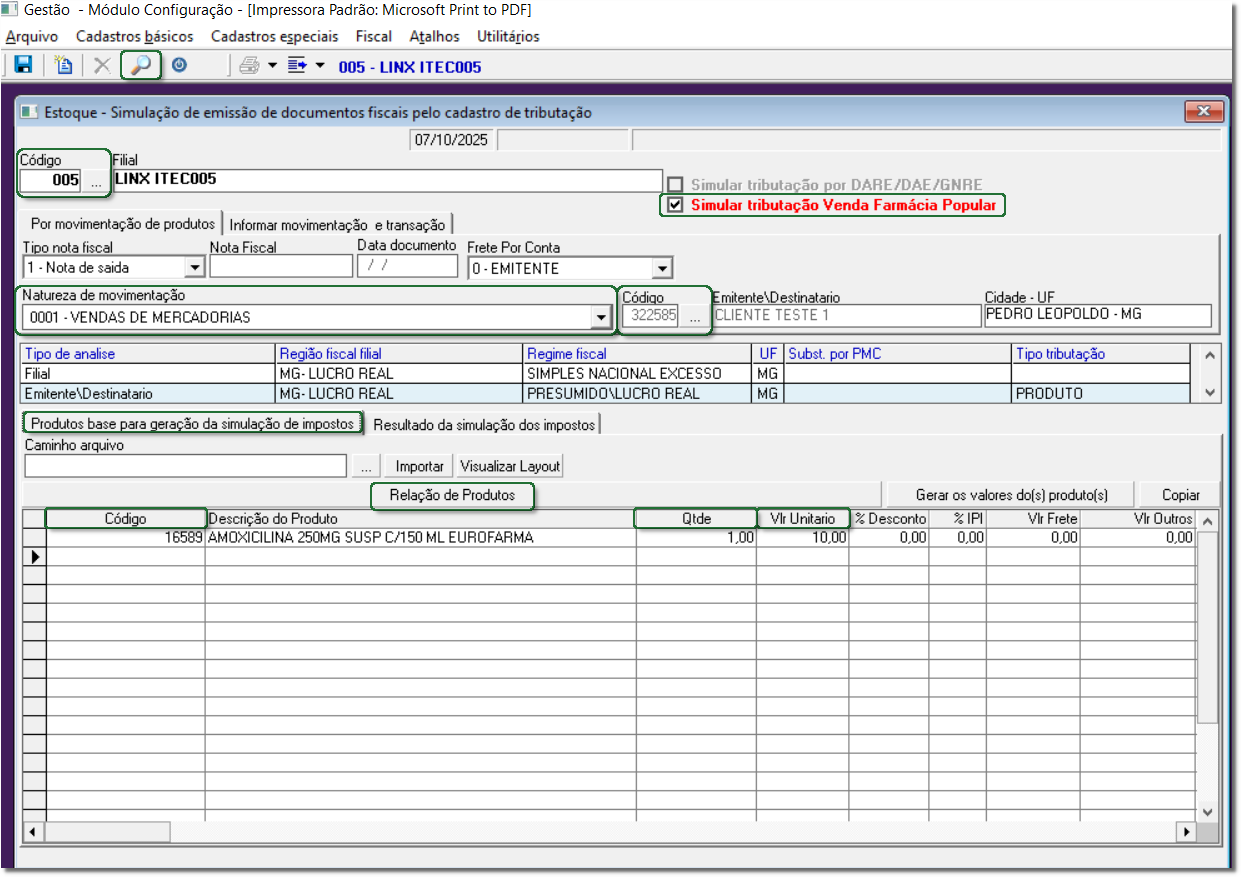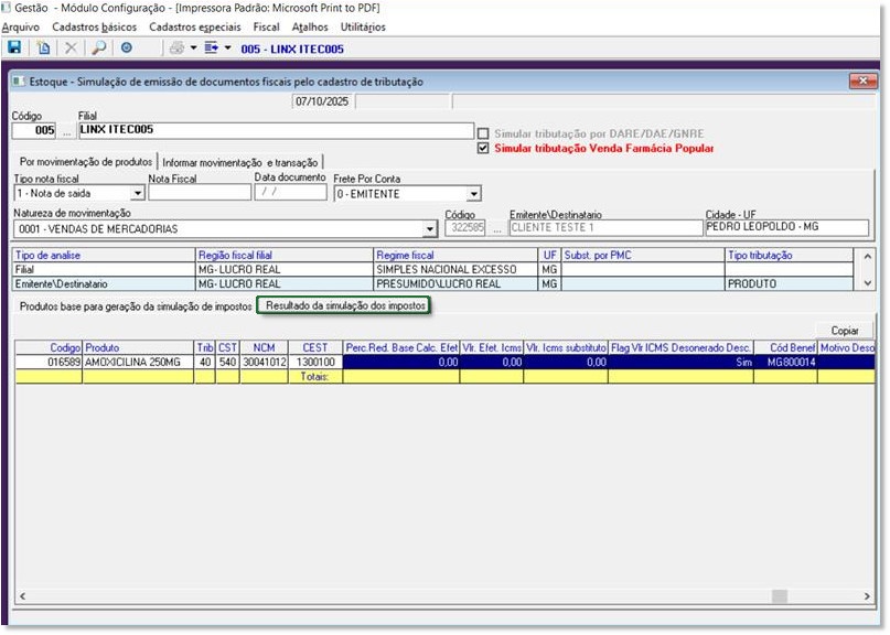 4. Selecione o checkbox 'Simular tributação Venda Farmácia Popular';