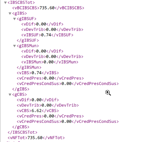Esta versão não realiza o envio dos grupos de Tributação Regular e Crédito Presumido relacionados a CBS e IBS.